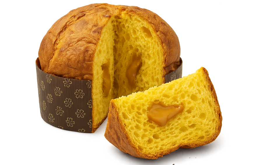 Il Panettone al caramello salato è un’esperienza che unisce deciso carattere e raffinata dolcezza. Il suo impasto, preparato con la pregiata Semola Senatore Cappelli e lievitato naturalmente con lievito madre, conquista per la sua leggerezza e armonia. All’interno contiene una suprema crema di caramello salato, morbida e golosa, che dona momenti di sorpresa ad ogni morso. Questa crema si fonde con la morbidezza dell’impasto, offrendo un piacevole contrasto tra dolce e sapido. La superficie dorata valorizza la semplicità del gusto e la fragranza del Panettone stesso. Creato artigianalmente da Vito Bongermino, panificatore che porta avanti una tradizione familiare dal 1950 giunta alla quinta generazione, questo panettone rappresenta una sintesi tra modernità e tradizione. Perfetto come fine pasto raffinato, da accompagnare a un vino liquoroso o un caffè aromatico, è un dolce capace di stupire con la sua eleganza discreta e il carattere persistente. Il Panettone al caramello salato è una danza di sapori contrastanti, un invito a scoprire la dolcezza che sa di brivido.