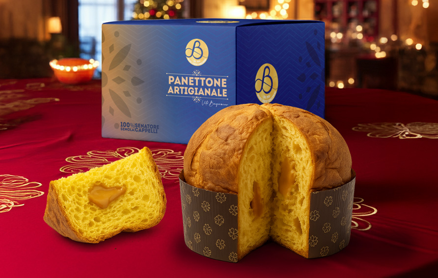 Il Panettone al caramello salato sorprende con una sublime crema di caramello morbido al suo interno. Realizzato con Semola Senatore Cappelli e lievitazione naturale, è un dolce artigianale, dal gusto deciso ma elegante, ideale per chi ama l’equilibrio tra dolce e salato. preparato artigianalmente da Vito Bongermino, è una delle eccellenze italiane del gusto.
