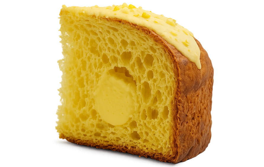 Il Panfogato Capri (Gin Lemon) unisce crema al limoncello, glassa al cioccolato bianco e limone, e una delicata bagna al gin 14%. Lievitato naturalmente con Semola Senatore Cappelli. Un dolce raffinato e agrumato, creato da Vito Bongermino, maestro panificatore da 5 generazioni.