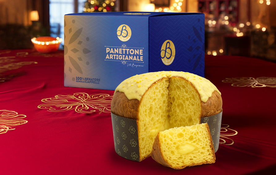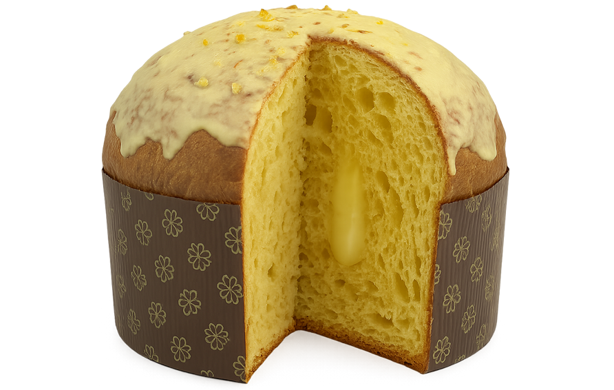 Il Panfogato Capri è un inno all’estate italiana racchiuso in un dolce di Natale, un’esplosione di profumi freschi e raffinati che evocano la luce del Mediterraneo. Il suo impasto, morbido e profumato, nasce dalla pregiata Semola Senatore Cappelli, lavorata con lievito madre vivo e lasciata lievitare naturalmente. Al suo interno, una delicata crema al limoncello, preparata con crema pasticcera artigianale e limoncello di alta qualità, regala una consistenza vellutata e un aroma vivace. Il tutto è avvolto da una glassa al cioccolato bianco e limone, lucente e profumata, che bilancia dolcezza e acidità con armonia. L’impasto è inoltre delicatamente imbevuto con gin al 14%, per una nota aromatica elegante e persistente.